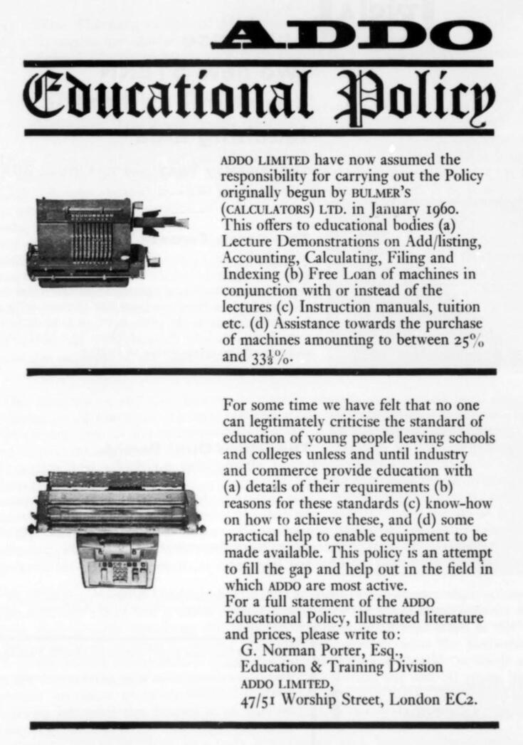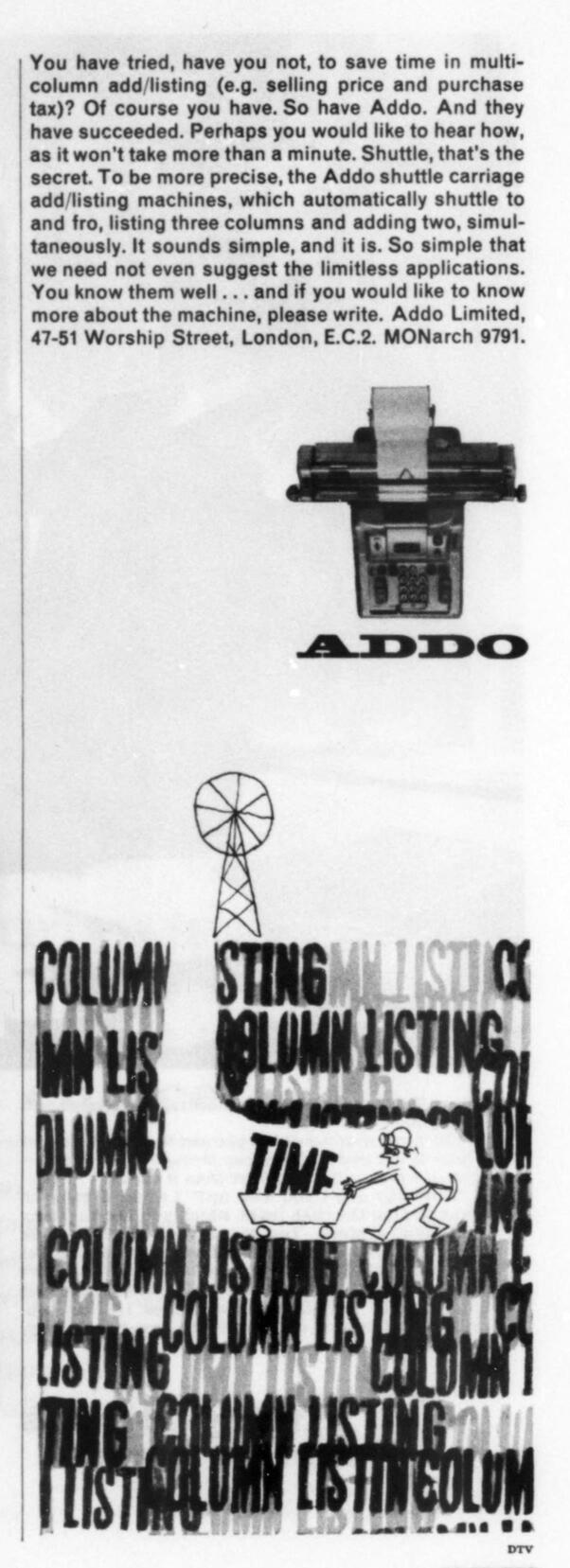 Addo Limited, Viking House, 5-11 Worship Street, LONDON, E.C.2. | (price 1/6) | |