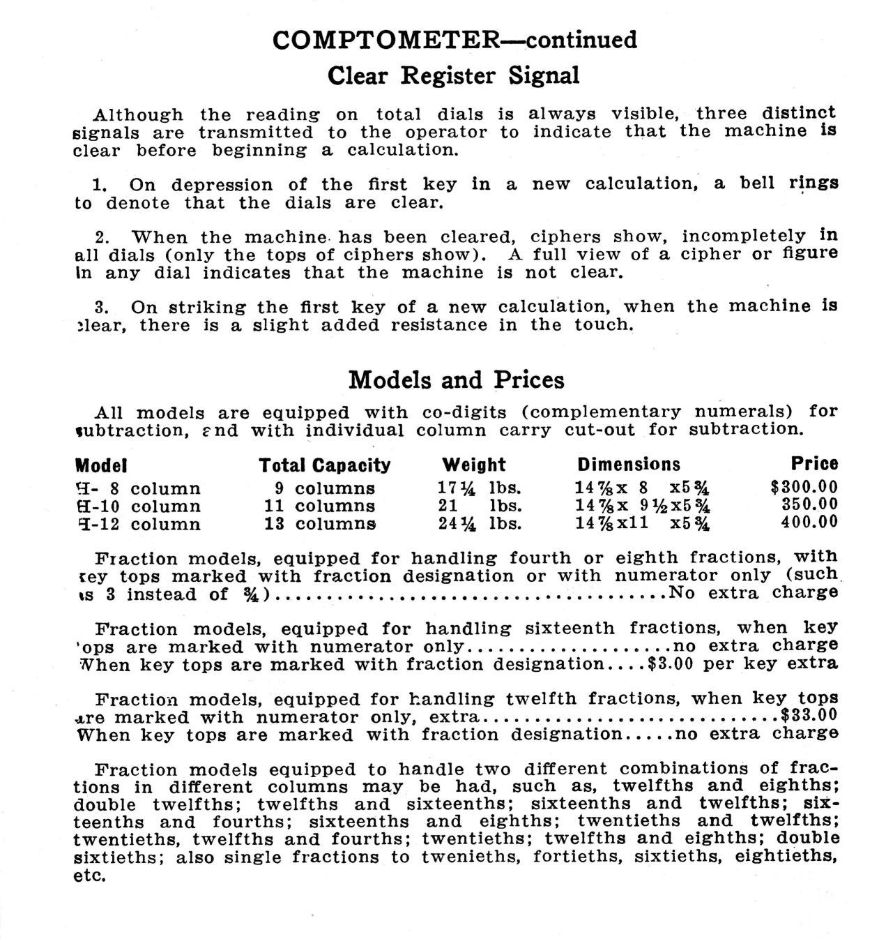 Business Costs, by DeWitt Carl Eggleston and Frederick B. Robinson, has a chapter on mechanical aids that describes the Comptometer.