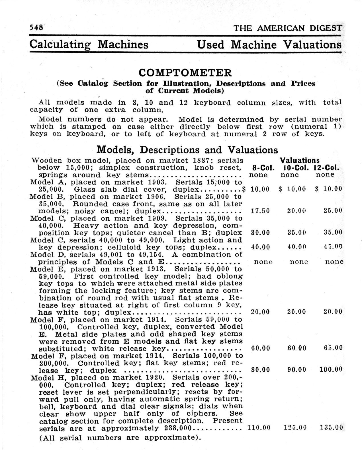 Machinery as an Aid to Accountancy, a published lecture by Lawrence R Dicksee, compares the Comptometer and the Burroughs machine.