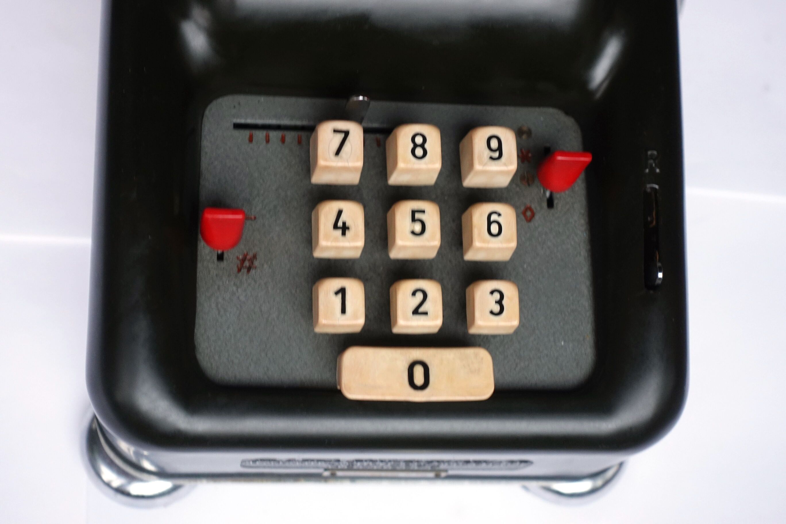 | 3 | 1950 | 33576 33942 34076 34091 34140 ???? | Boxy plastic casing, paper roll sticks out quite high. No negative totals. Serial numbers probably started at 30000. |