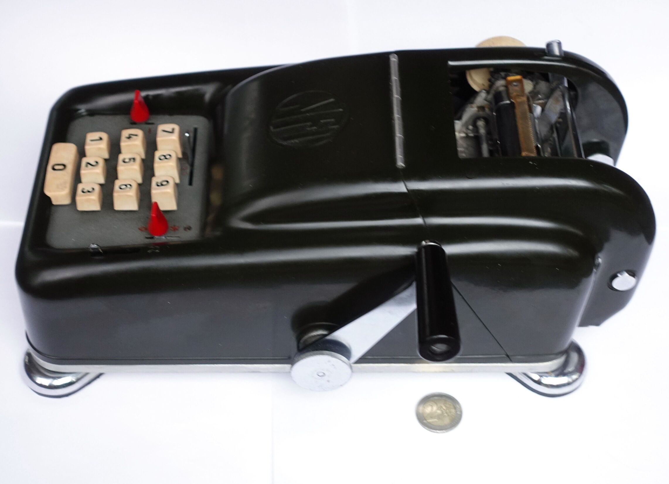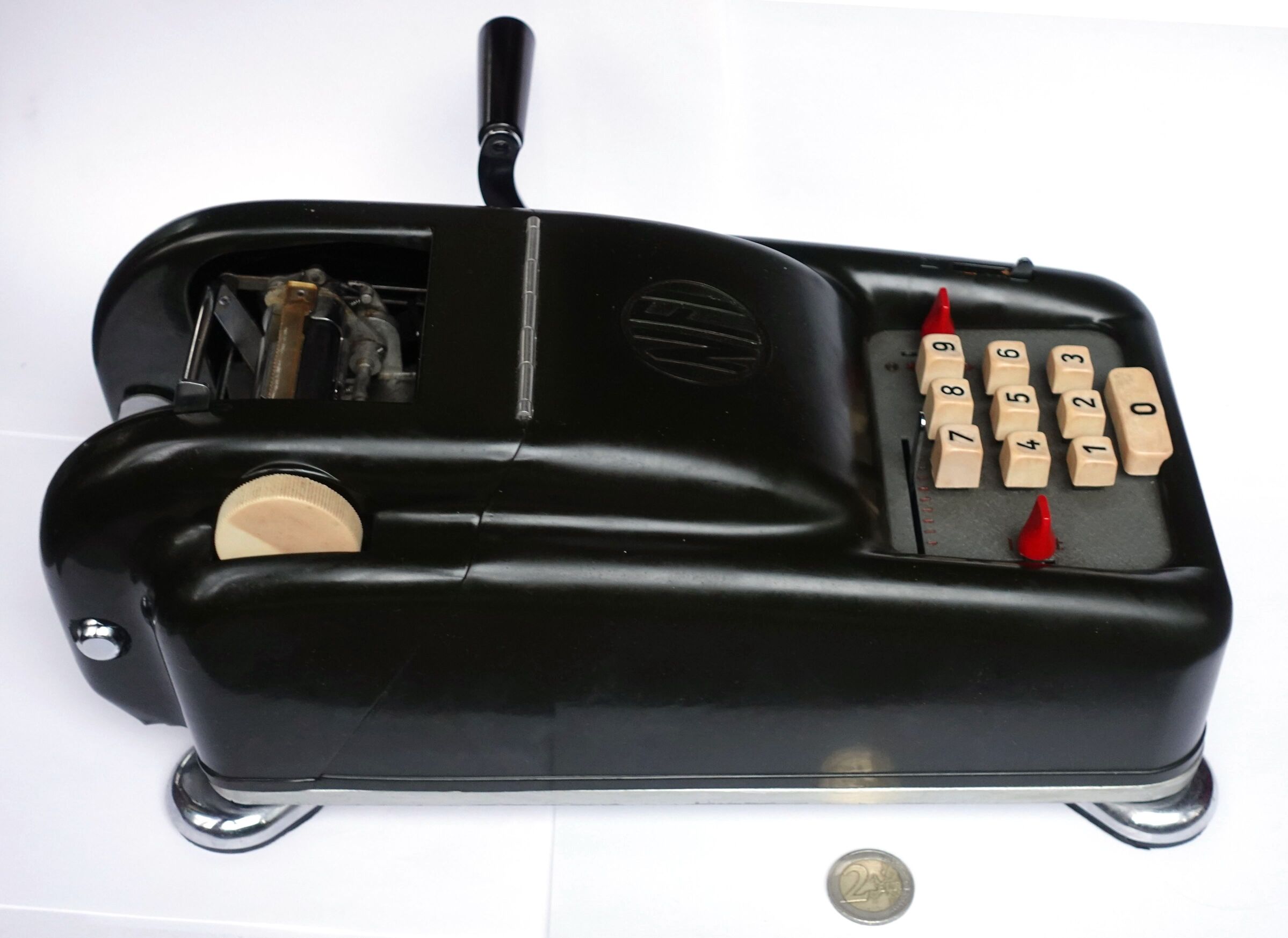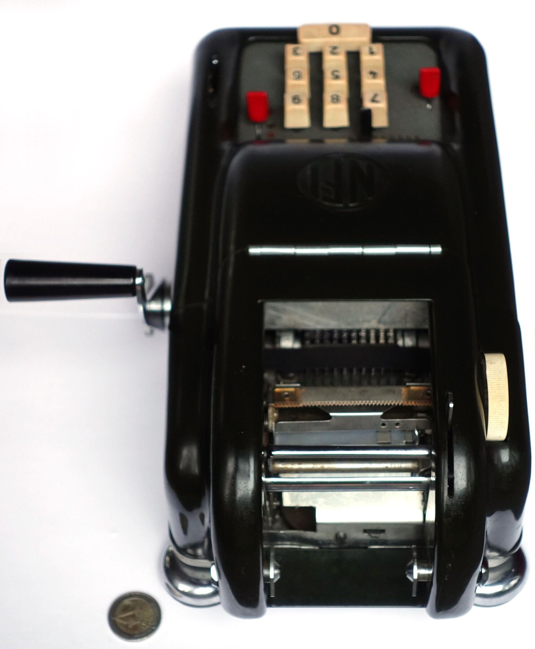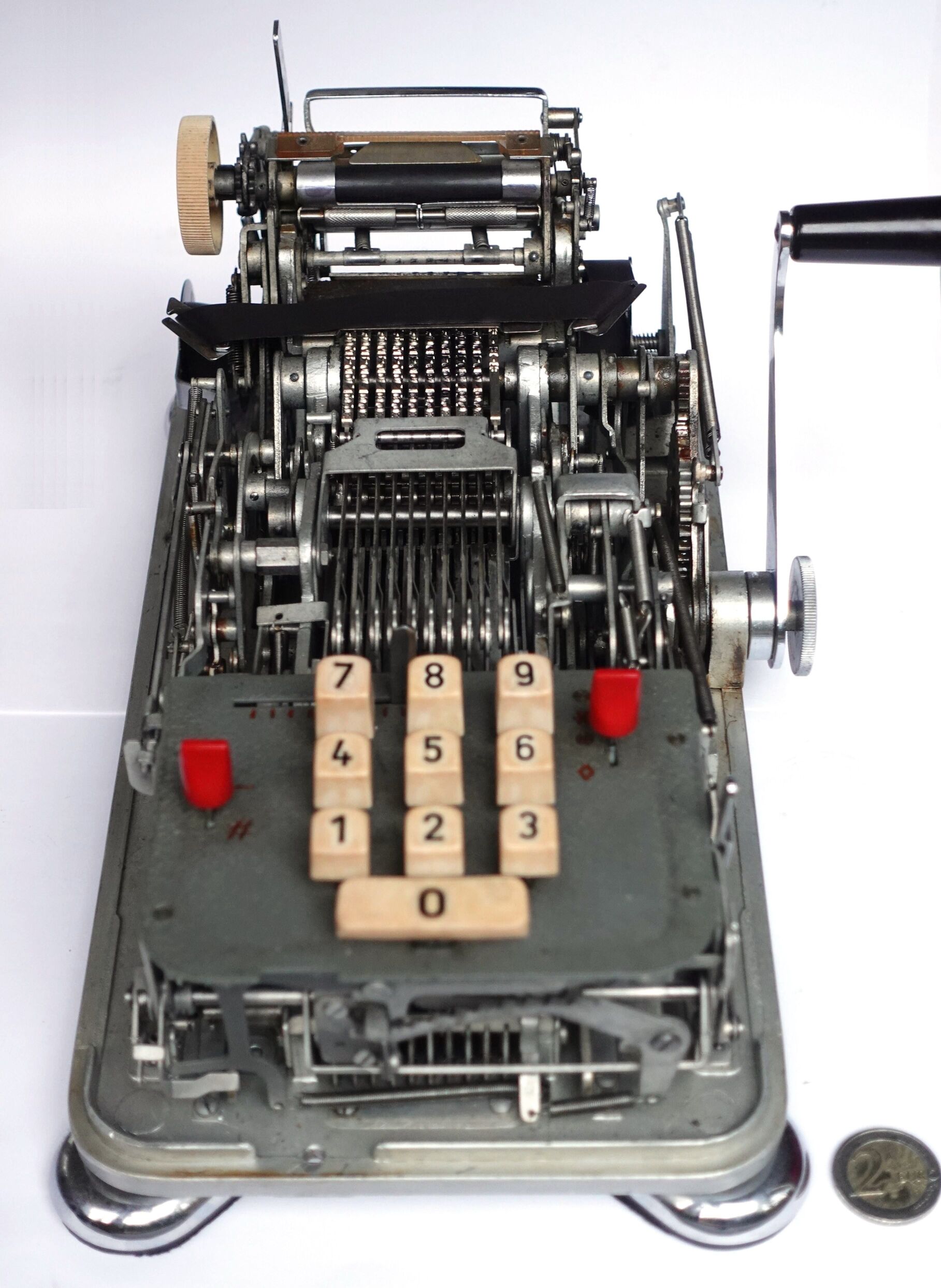 Mauser's original prototypes of the adding machine made just before the war were considered version 1, and the unproduced variants developed during the war were series 2. When Rexin finally saw his machine produced by NFI, it was therefore called model 3. The main difference is that it had an upright lever that the user pulls, whereas the previous models had an almost horizontal lever that the user had to press down (similar to the Corema).