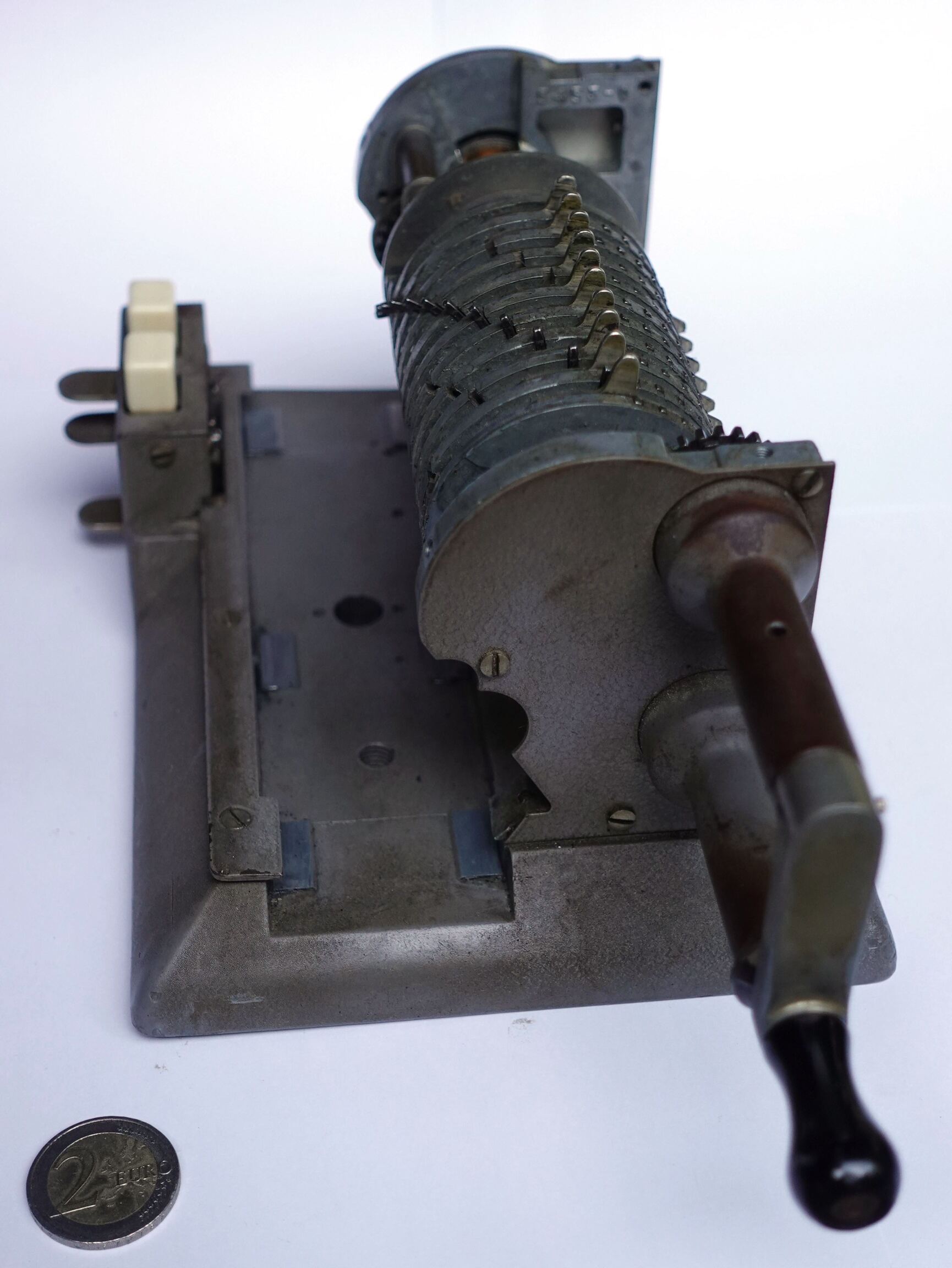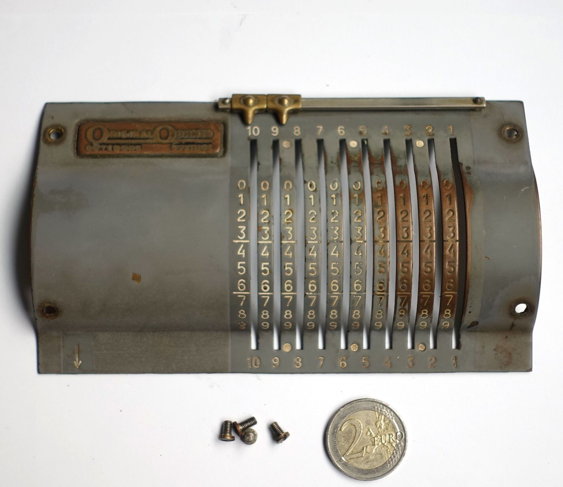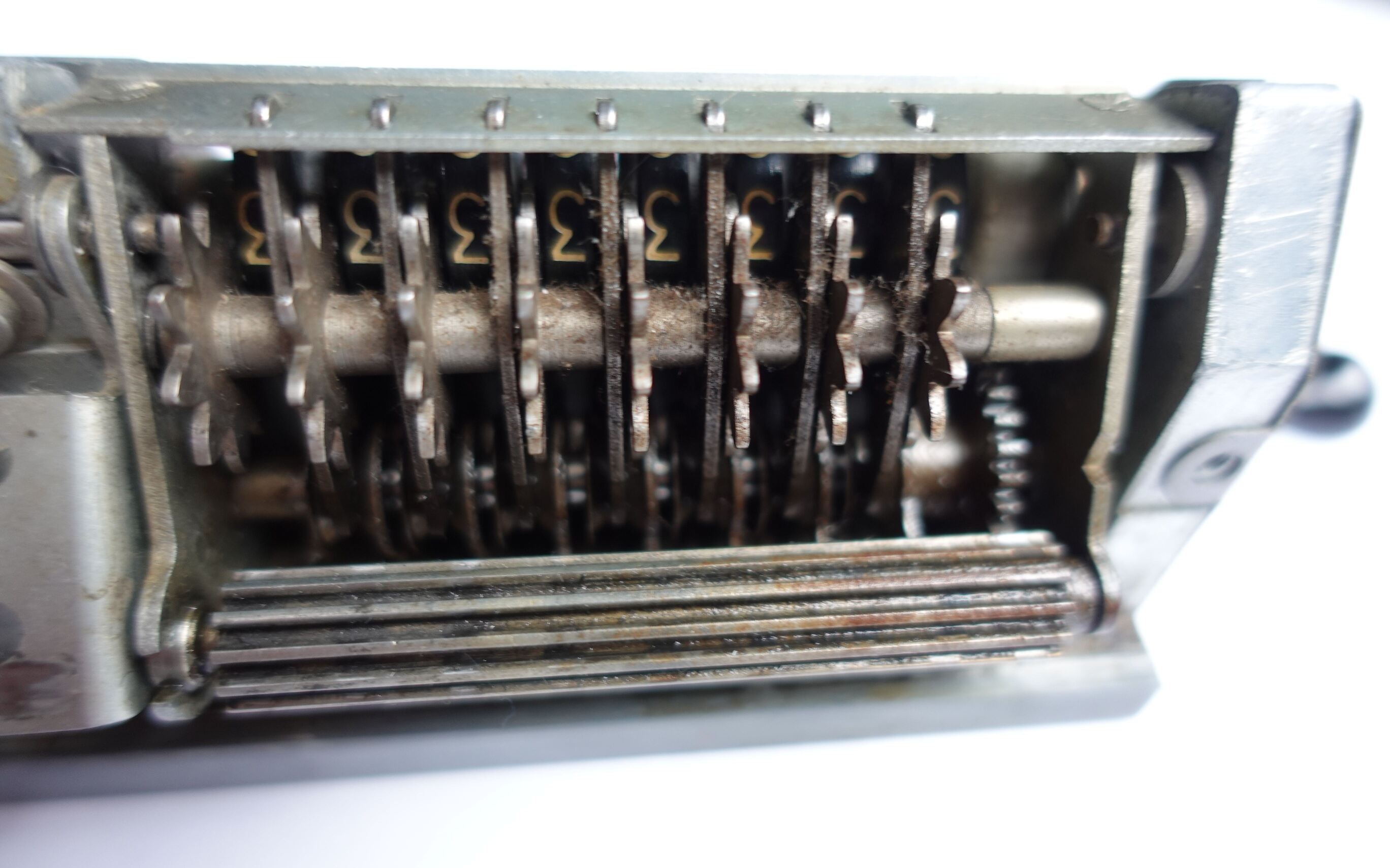 There is a strange defect in this machine. It seems that the carry pins on the main cylinder are too long and bump against the top cover, unless that cover is kept a millimeter or so away from the body by not tightening the screws. I doubt that the machine was originally produced like that, but have no idea what could have caused that problem, except that maybe the whole pinwheel cylinder was rebuilt at some point.
