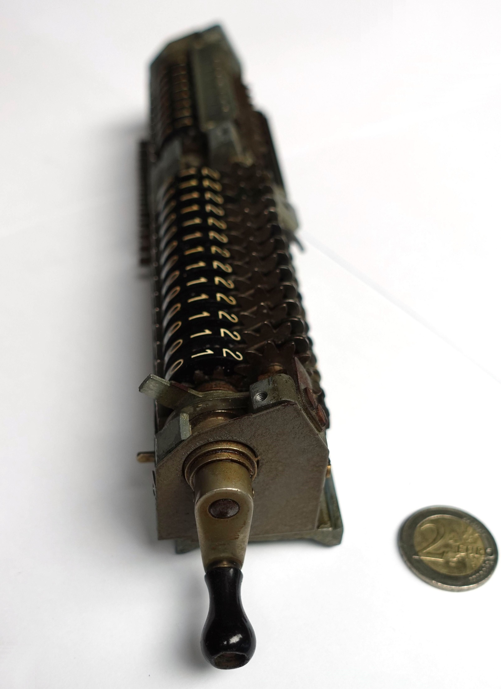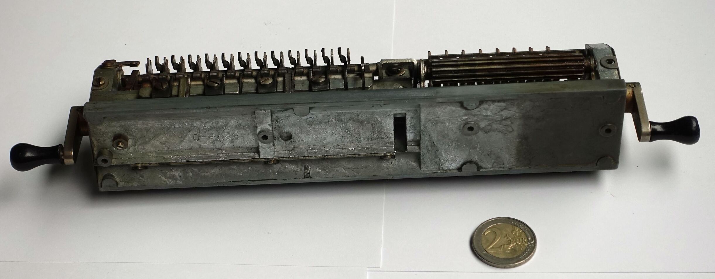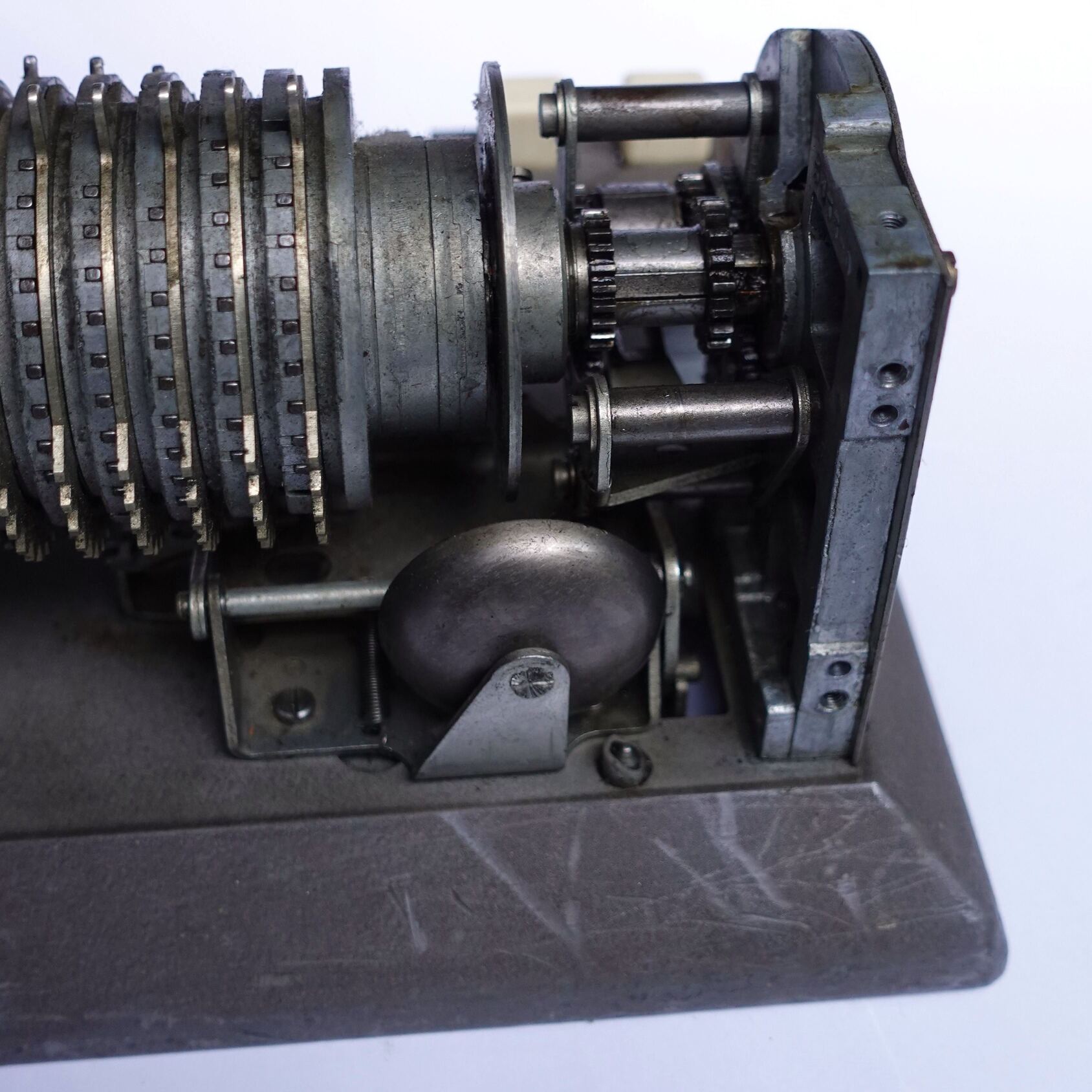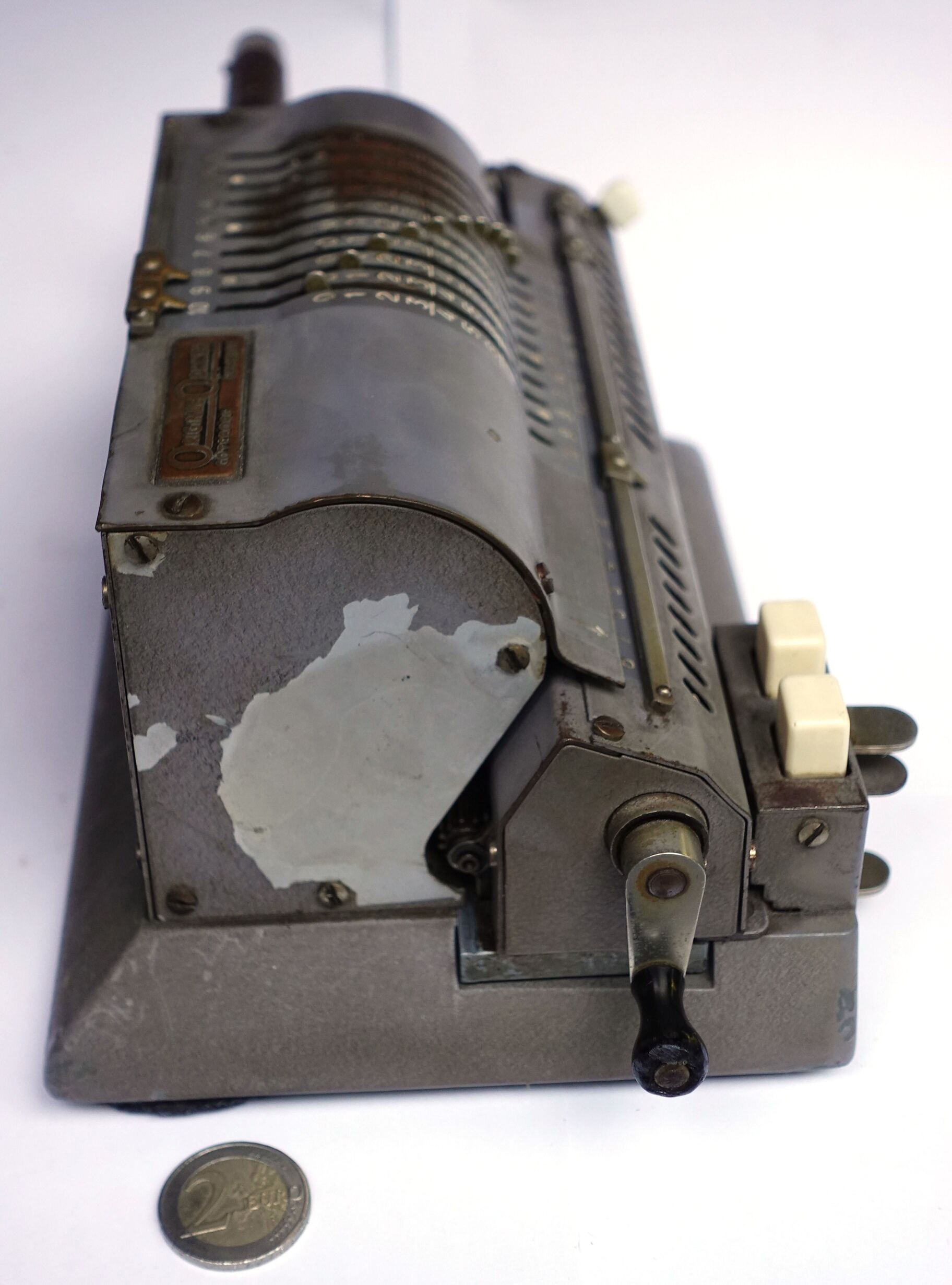 There is a strange defect in this machine. It seems that the carry pins on the main cylinder are too long and bump against the top cover, unless that cover is kept a millimeter or so away from the body by not tightening the screws. I doubt that the machine was originally produced like that, but have no idea what could have caused that problem, except that maybe the whole pinwheel cylinder was rebuilt at some point.