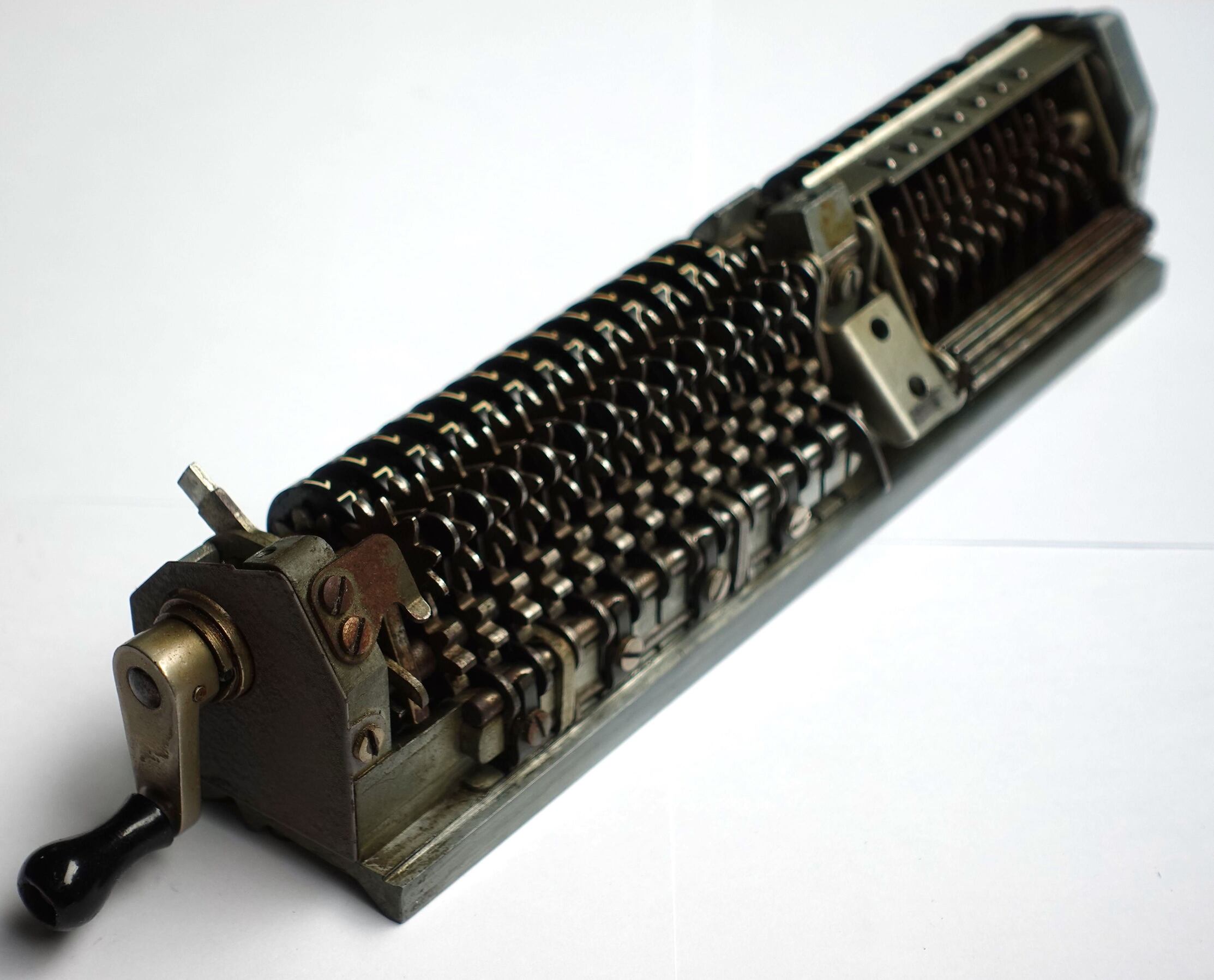 The Odhner Arithmometer is a mechanical calculator with a simple pinwheel mechanism. This machine was made in Russia, but the lettering on it is in the latin alphabet, not Cyrillic, so this one was made for the international market. The logo on the left says Maschinenfabrik W. T. Odhner, St. Petersburg.