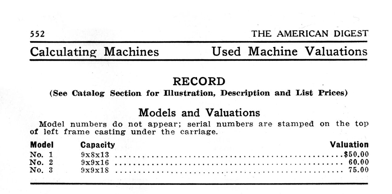 There was really only one main model which was available in several capacities. In the table below are all the Record machines that I have found pictures of online and for which the serial number is known.