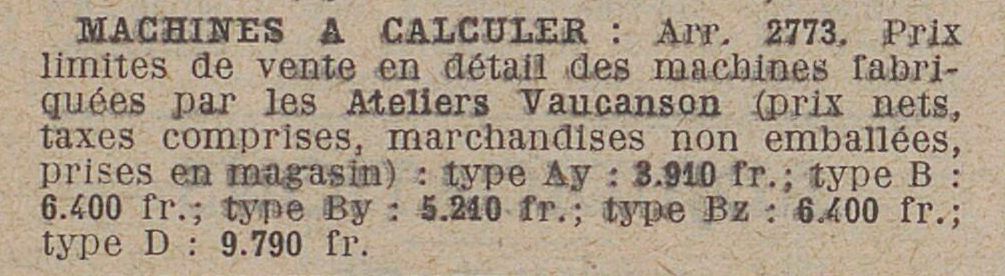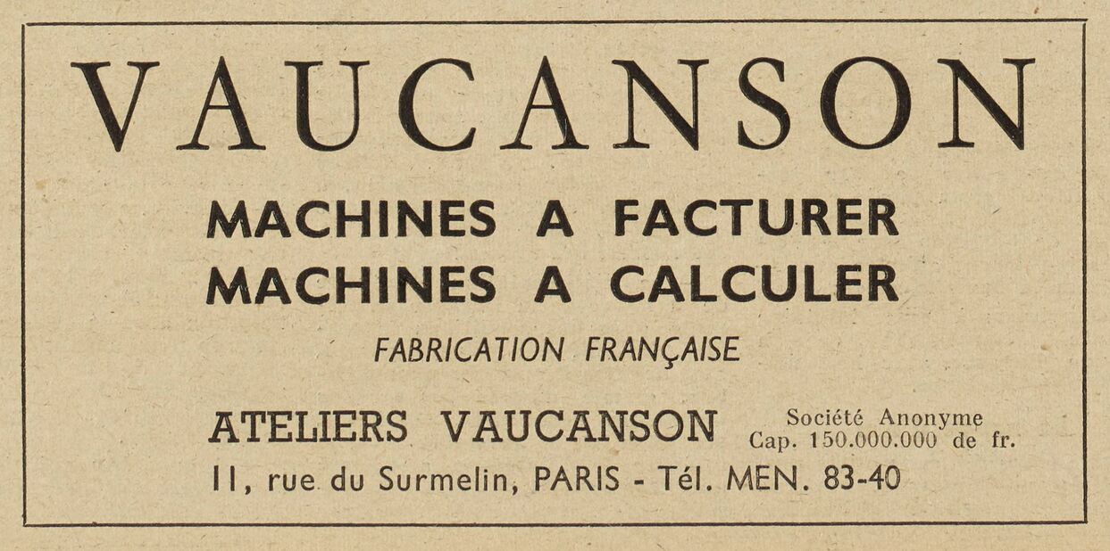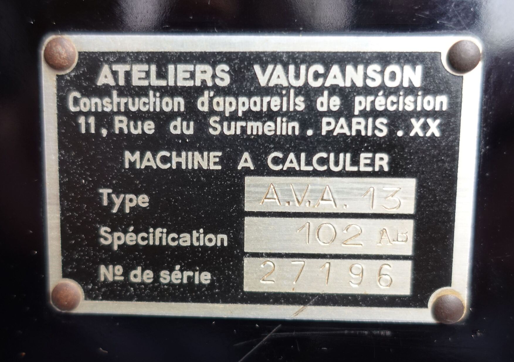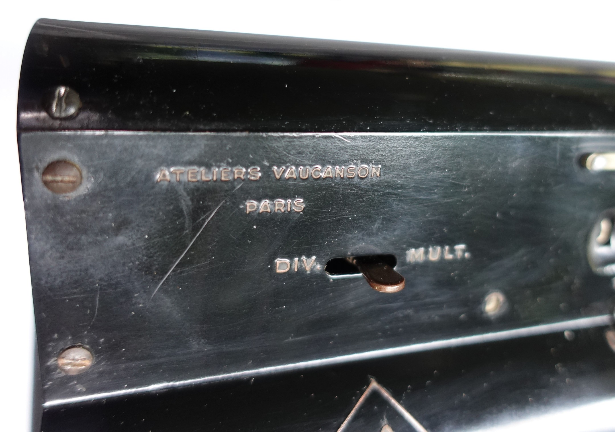 Ateliers Vaucanson made a variety of precision instruments, including clocks, speedometers and cinema equipment. They started making calculators in 1932.